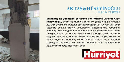 Aktaş & Hüseyinoğlu Hukuk Bürosu, İstanbul merkezli olup Ankara, İzmir ve Muğla gibi ticari merkezlerdeki bürolarla iş birliği yaparak faaliyetlerini sürdüren bir hukuk firmasıdır. Yerli ve yabancı müvekkillere hem ulusal hem de uluslararası düzeyde danışmanlık ve temsil hizmetleri sunmaktadır. Psikoloji ve gayrimenkul alanlarındaki tecrübeleriyle farklı disiplinlerin birleşimini uzmanlık hizmetlerine entegre etmektedir.